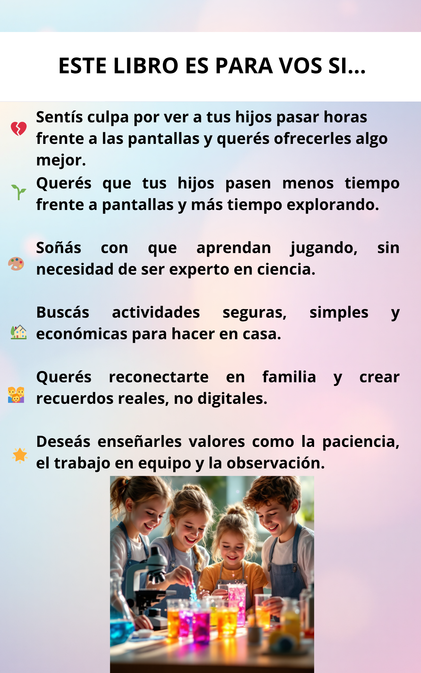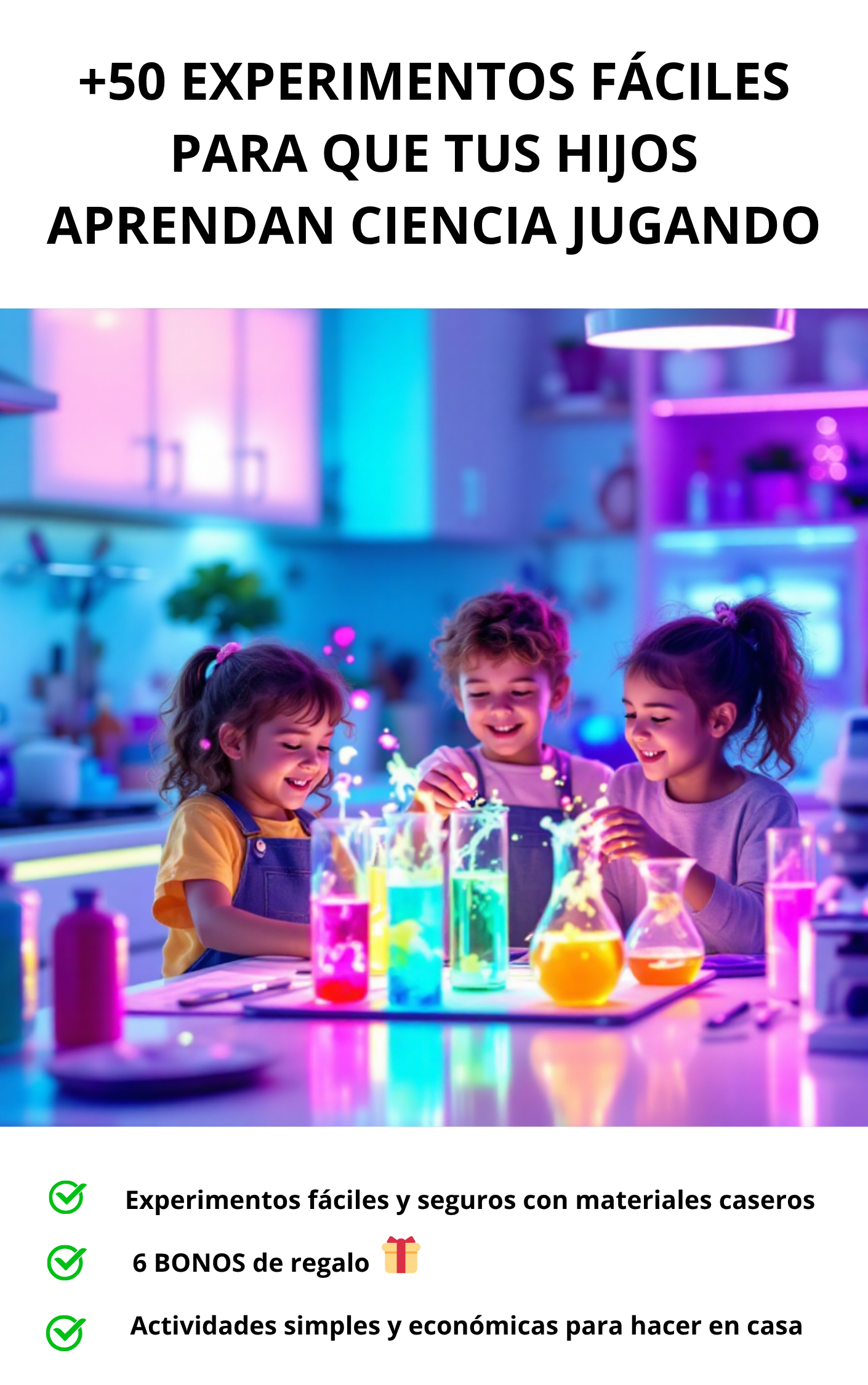 Cada experimento incluye pasos simples, explicaciones claras y tips de seguridad para guiarte fácilmente.